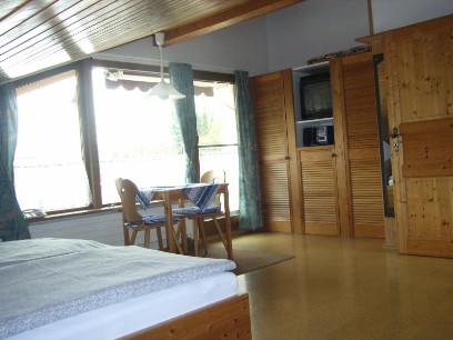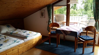 Der Esstisch steht direkt am Fenster mit Blick in den Garten. Gerne können Sie die sonnigen Stunden auch auf dem Balkon verbringen.